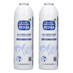 2 flacoane de agent frigorific HC134a pe bază de hidrocarburi. Fiecare flacon conține 185 g de gaz, echivalent cu 1 × 500 g gaz R134a.